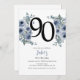 Invitation Elégant Blue Floral 90e anniversaire