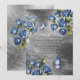 Celebrate your special day with this elegant blue roses wedding invitation featuring a stunning bouquet of soft blue roses tied with a delicate ribbon and accented by a graceful butterfly. Set against a modern silver textured background, this design blends romance with sophistication. Perfect for classic, modern, or winter weddings, this floral wedding invitation adds timeless beauty and charm to your big day. Personalize with your wedding details to create a memorable first impression for your guests.
