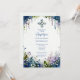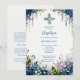 Elegant Digital Watercolor Blue Shades Floral Frame Arch Shape Baptism Invitation Cards.