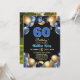 An elegant modern design featuring blue 60 number with gold edges and balloons with silver, blue and gold glitter and a special photo of the birthday person on the back of the invitation. Customize the details for a unique and chic Birthday Celebration.