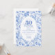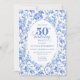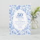 Invitation Elegant Blue Toile Rose Floral 50th Birthday Invit