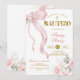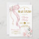 Invitation Elegant Blush Pink Bow Coquette Rosary Baptis