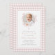Invitation Elegant Blush Pink Gingham Photo Girl Baptism