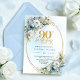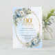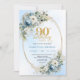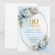 Invitation Elegant Bohemian Blue White Floral Gold 90th Bday