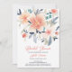 Jolie, élégante et audacieuse invitation à la douche nuptiale à l'aquarelle florale peinte à la main avec de belles fleurs originales dans les couleurs de la terre, en bleu poussiéreux, rouge, rose, terre cuite et orange sur le blanc. Parfait pour toute saison avec une touche spéciale automne.