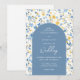 Invitation Elégant Boho bleu et jaune arche de fleurs de cott