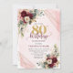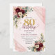 Invitation Elégant boho bordeaux roses or 80e anniversaire