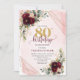 Invitation Elégant Boho Burgundy Gold Roses 80e anniversaire
