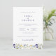 Elégant Boho Fleur sauvage bleu Script Faire-part de mariage avec photo du couple au dos de la carte pour customiser en quelques pas faciles!