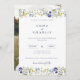 Elégant Boho Fleur sauvage bleu Script Faire-part de mariage avec photo du couple au dos de la carte pour customiser en quelques pas faciles!