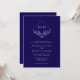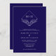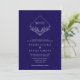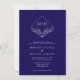 Invitation Élégant Boho Leaf Monogramme Mariage bleu foncé