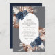 Invitation Elegant Boho Navy et Brown Florals Oval Mariage