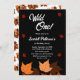 Cette élégante invitation d'anniversaire d'automne noir et blanc est parfaite pour un anniversaire d'automne moderne. Le design simple est composé de feuille tombant avec une élégante typographie blanche sur un arrière - plan noir.