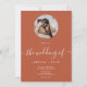 Simple élégant boho en terre cuite blanche script photo avec cette calligraphie classique et élégante le mariage de Script en terre cuite ton et blanc. Ajoutez la photo du couple dans un masque circulaire.