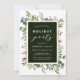 Ce Noël | L'invitation de vacances comprend des eucalyptus à l'aquarelle peinte, des feuilles verts, des baies rouges, des branches de pin, et un cadre rectangle faux or avec une calligraphie stylisée. Pour une personnalisation plus avancée de cette conception, cliquez sur le lien "Customiser plus loin". Des articles correspondants sont également disponibles.