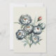 Un bouquet méticuleusement illustré. Les fleurs sont principalement dans les tons verts et gris, avec des détails complexes mettant en évidence leurs pétales et leurs étamines. Il y a un bourgeon rouge distinct sur l'une des tiges, qui contraste magnifiquement avec les tons cool du reste. Les feuilles et les tiges sont représentés avec des nuances variées de vert, donnant profondeur et dimension à la composition. L'ensemble est dressé contre un arrière - plan blanc glacier, permettant de voir les couleurs des fleurs et les détails.