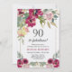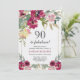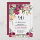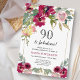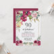 Invitation Elégant Bourgogne rose or floral 90e anniversaire