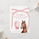 Célébrez le jalon de votre bébé avec ce modèle de cheval gracieux! Un cheval époustouflant orné d'un arc rose et d'un ballon portant le numéro "1" dans les tons pastel doux fait de cette invitation l'idéal pour une fête d'anniversaire. Ajoutez le nom de votre enfant et les détails de l’événement pour créer un souvenir de charme. C’est une belle façon pour les clients invitations de passer une journée de bonheur et de fête !