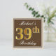 Invitation Elégant, Brown, Faux Gold 39ème anniversaire + Nom