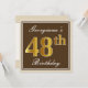 Invitation Elégant, Brown, Faux Gold 48ème anniversaire + Nom