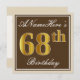 Invitation Elégant, Brown, Faux Gold 68ème anniversaire + Nom