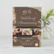 Célébrez un événement remarquable avec cette élégante invitation pour un 50e anniversaire de mariage. Le design sophistiqué présente un fond brun riche orné d'éléments floraux délicats et d'accents vintage nostalgiques, notamment un timbre-poste et une montre ancienne. Mettant en valeur l'histoire d'amour intemporelle, l'invitation comprend une bande de film montrant des photos chéries du couple. Magnifiquement conçue avec des polices élégantes de style manuscrit, cette invitation donne le ton parfait pour une célébration d'anniversaire doré inoubliable. Personnalisez les détails de l'événement pour honorer l'amour et l'engagement durables du couple spécial.