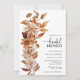 Élégante Invitation de Brunch nuptial. Cette invitation au brunch nuptial, élégant et rustique, présente des feuilles d'orange brûlé et de terre cuite peints à la main, des dahlias crème et beige, et de beaux roses de couleur rouille, parfaits pour un mariage automne ou automne ! L'arrière de l'invitation a un simple arrière - plan blanc avec un bouquet de coordination.