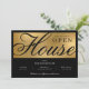 Créez des invitations professionnels pour votre événement immobilier ou votre fête du réchauffement de la maison avec cet élégant Black & Gold Open House Invitation. Cette élégante invitation à la vente d'une propriété en feuille d'or imitation dispose d'une disposition minimale avec des polices serif branchées et de l'espace pour votre nom d'entreprise et les détails de l'événement.