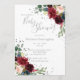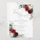 Invitation Elégant Burgundy Blush Rose Floral Blue Baby Invit
