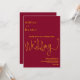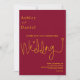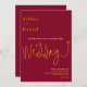 Cet élégant faire-part de mariage bordeaux et doré est parfait pour un mariage moderne. le design simple comprend une élégante calligraphie dorée sur un arrière - plan bordeaux.