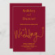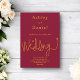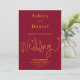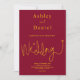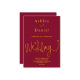Cet élégant faire-part de mariage bordeaux et doré est parfait pour un mariage moderne. le design simple comprend une élégante calligraphie dorée sur un arrière - plan bordeaux.