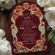 Capture timeless elegance with this Art Nouveau-inspired invitation! Featuring red peonies, leaves against a burgundy background, this design sets the tone for a sophisticated celebration. Perfect for weddings, galas, and milestone events! Please note that the gold on this product is NOT real foil; it is printed flat.