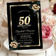 Invitation Elégant cadre d'or Flower Black 50e anniversaire