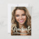 Célébrez votre graduation avec cette simple invitation à la fête de remise de diplômes en photo script. Ce design de carte de graduation a une photo à l'invitation avant et de la grande fête à l'arrière sur parties scintillant or ombre arrière - plan.
