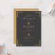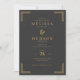 This elegant wedding invitation features a sophisticated dark charcoal background with gold accents, creating a luxurious and timeless feel. The layout is centered and vertically aligned, showcasing the names in bold serif typeface, while ornate geometric borders add a touch of refinement to each corner. With crisp digital print quality, this design emphasizes clarity and formality, making it perfect for a classic and memorable celebration. The mood is one of sophistication and anticipation, ideal for marking a significant life event.
