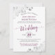 Les temps désespérés appellent des mesures désespérées ! En raison de l'urgence actuelle en santé publique, les couples trouvent des moyens créatifs de célébrer leurs mariages. Cette belle invitation va invitation vos invités à assister virtuellement à un livestream de votre mariage. Il présente un design simple mais élégant avec cassis en dentelle violet ou magenta et de calligraphie en écriture grise sur un arrière - plan blanc et frilly argenté gris faux feuille dans les coins. Parce que l'amour perdure !