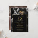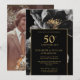 Invitation Élégant Chic Fleur Black And Gold Photo 50e Annive
