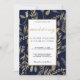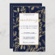 Un élégant chic bleu marine et or luxueux invitation à mariage floral luxe. Cette florale dorée glamour et tendance est parfaite pour toute jeune fille moderne classe et sophistiquée ou n'importe qui. Ce design est parfait pour l'événement branché et élégant. Concevez avec votre propre message et informations. Tous les dessins sont imprimés.
