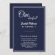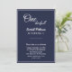 Cette élégante invitation d'anniversaire bleu marine et blanc est parfaite pour un anniversaire moderne. le design simple comprend une élégante calligraphie blanche sur un arrière - plan bleu marine.