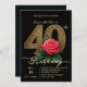 Invitation Elégant Chic Red Rose & Gold Numéro 40e anniversai