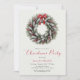 Invite friends and family to a festive night with this elegant Christmas party invitation featuring a classic frosted pine wreath with red berries and a satin-style red bow. The clean white background and modern red script give it that Pinterest-loved minimalist holiday aesthetic while still feeling warm and traditional. Personalize the host name, date, time, address and RSVP details to create a custom Christmas cocktail party invite, family gathering card, or office holiday party invitation. Perfect for sharing on social, this timeless wreath design looks beautiful displayed on fridges, mantels and flat-lay photos all season long.