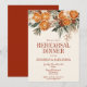 Cette élégante invitation à dîner florale d'agrumes d'ivoire présente une végétation fleurie automne-hiver. Oranges en orange brûlée avec bâtons de cannelle et fleurs de Noël. Tout le texte peut être modifié. L'arrière - plan orange brûlé foncé au dos est facultatif.