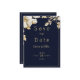Elegant navy blue and gold floral wedding Save the Date invitations featuring timeless design and luxurious detailing. The rich navy backdrop pairs beautifully with shimmering gold accents and delicate floral motifs. Perfect for classic, sophisticated weddings, these invitations exude romance and refinement. Crafted to impress your guests and set the tone for an unforgettable celebration.