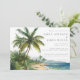 Cette invitation de mariage élégante à l'aquarelle de plage tropicale peut être personnalisée avec vos informations en typographie moderne avec le code QR de votre site web de mariage au verso. Conçu par Thisisnotme©