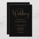 Ce faire-part de mariage de script minimaliste noir et or peut être personnalisé avec vos informations en typographie chic avec les détails de votre site mariage et votre code QR au verso. Conçu par Thisisnotme©