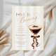 An elegant bridal shower invitation inspired by a chic coffee theme with a stylish espresso glass and delicate bow detail.