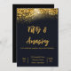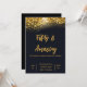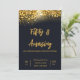 Invitation Elégant Confetti Or sur Noir | 50e anniversaire