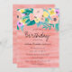 Invitation Elégant Coral Jaune Aquarelle Florale Anniversaire