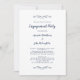 Un design élégant et romantique d'invitation de mariage et de fiançailles bleu marine et blanc présente un design classique formel traditionnel intemporel. La finition sans bordure vous permet de choisir facilement la forme de papier qui vous convient pour le look final. Un fond transparent permet à la beauté de votre choix de papier d'être appréciée sur l'avant et l'arrière de la carte. Deux fioritures décoratives contenant chacune un seul cœur entourent magnifiquement l'écriture. Personnalisez avec vos détails en lettrage et écriture romantiques. Pour des résultats optimaux, remplacez les détails du modèle par vos propres détails en laissant de l'espace entre les paragraphes comme dans l'exemple et mettez les majuscules là où cela est spécifié ou si le mot est un nom propre et normalement capitalisé. Envoyez un e-mail à invitationsuites@gmail.com pour toute question ou demande de couleur personnalisée.
