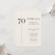 Celebrate a milestone birthday in timeless style with this elegant cream and gold 70th birthday invitation. Featuring refined typography, a minimalist layout, and a soft neutral palette, this design is perfect for an upscale dinner, cocktail party, or intimate celebration. Fully customizable for name, date, and details.
